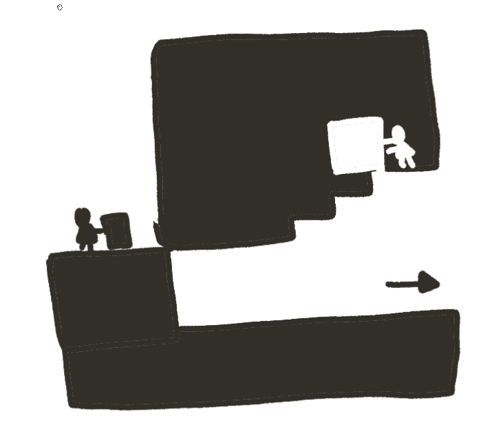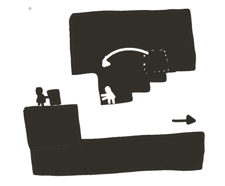 위 그림은 빈 공간 (=흰색 물체)를 밀어 원래는 막혀 있던 길을 열어 주는 모습이다.