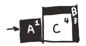예를 들어 위 상황에서 A를 밀면 당연히 C 위로 올라갈 것이라고 생각할 것이다.