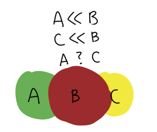 오른쪽 예시의 경우 A << B 이고 C << B 지만, A 와 C의 관계는 추론해낼 수 없다.