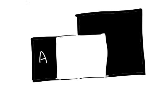 이 상황에서 A를 밀면 눈에는 안 보이겠지만 흰색 물체 뒤에서 검정 물체 2개가 겹치게 된다.
