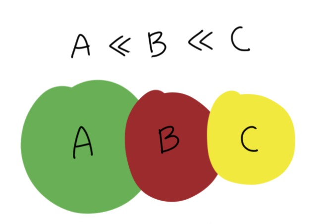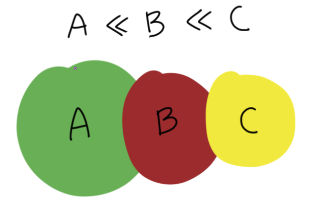 왼쪽 예시의 경우 화면만 봐도 A << B 이고, B << C 임을 알 수 있다.